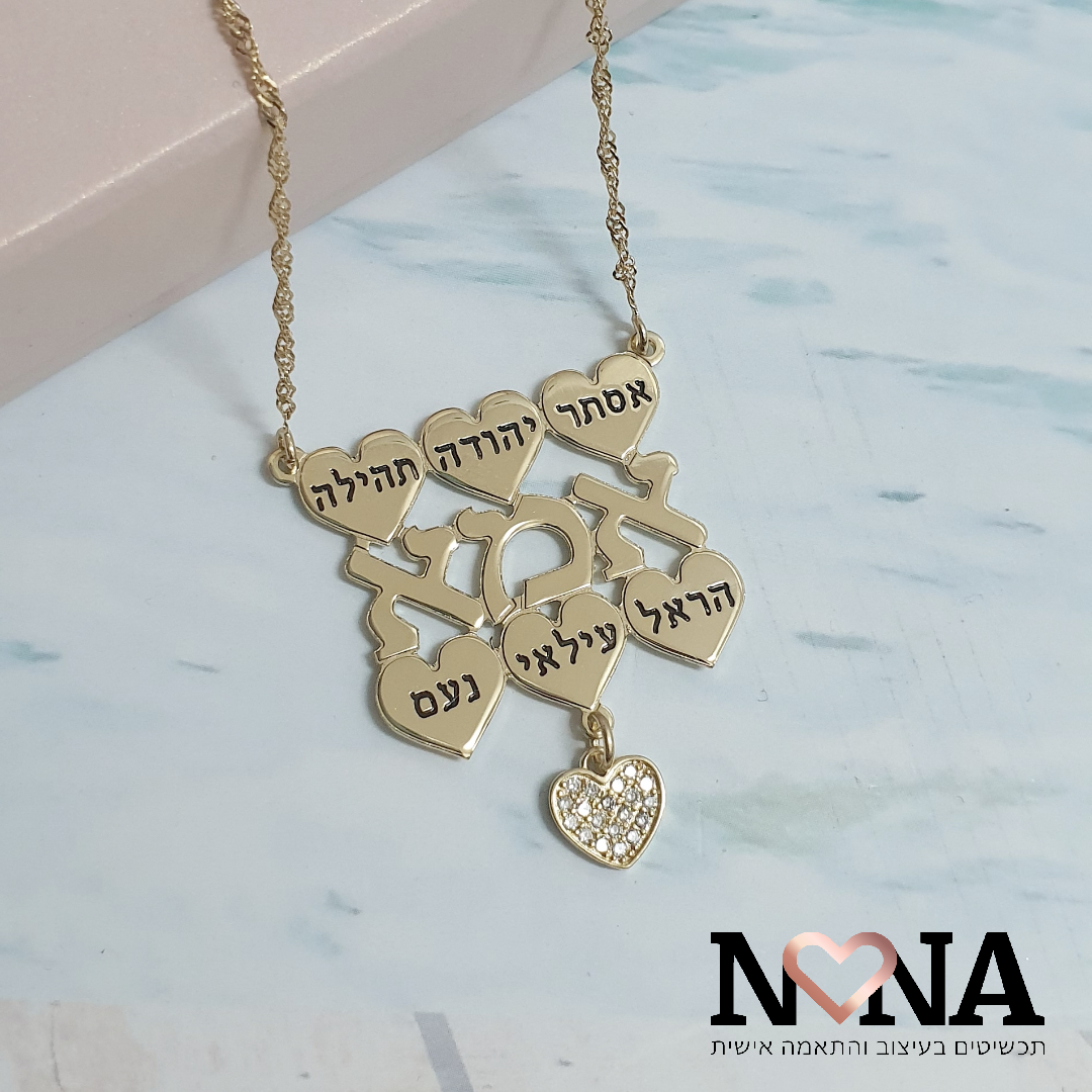 אפשרויות:חומרמספר לבבות (עד 8)תוספת תליון נופל לבחירהמילים/שמות לחריטה (רשום לפי הסדר הנדרש מימין לשמאל ועם פסיק בין מילה למילה)סוג חריטהאורך סטנדרטי 45 ס"מ+הארכה,במידה ונדרשת מידה אחרת, בחר: