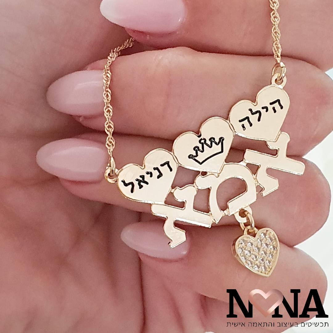 שרשרת אמא לבבות חרוטים ותליון משובץ לבחירה