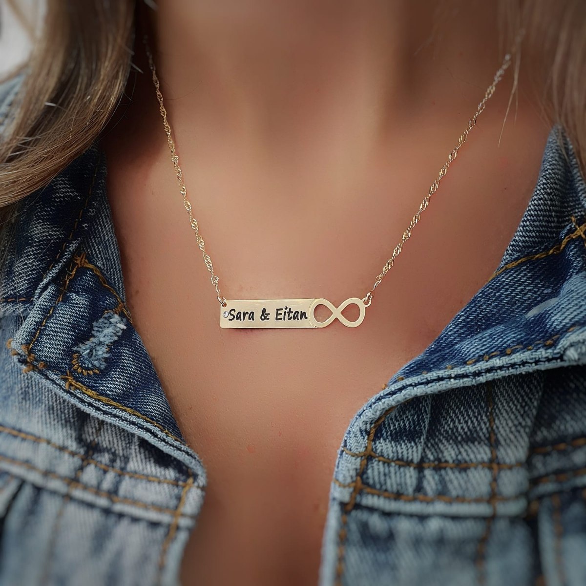 שרשרת דיסקית מלבנית עם אינפיניטי וחריטה