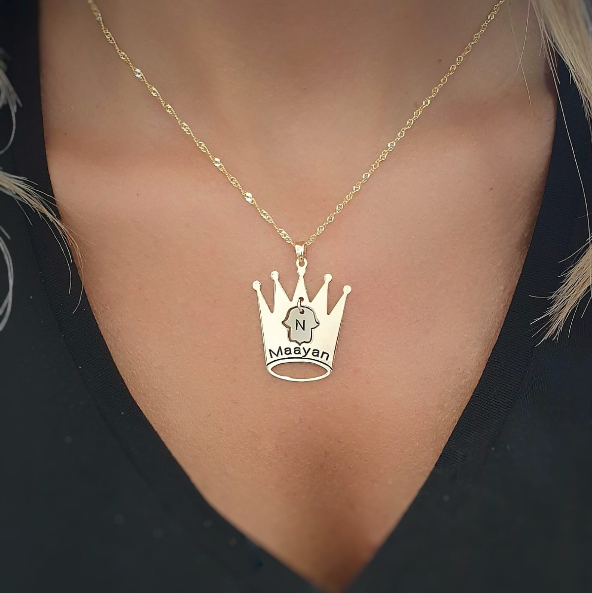 שרשרת כתר גדול עם חריטה וחמסה קטנה