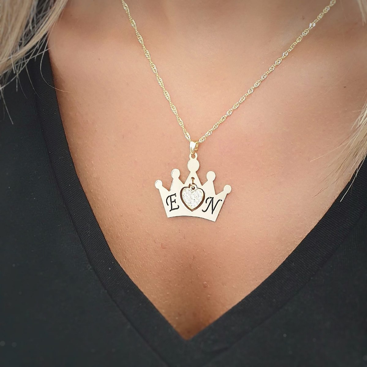 שרשרת כתר עם אותיות ולב משובץ