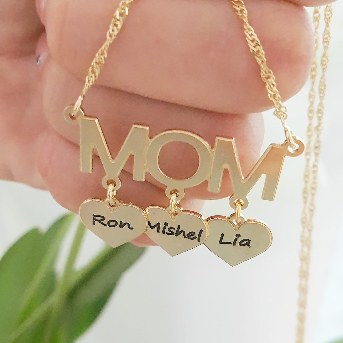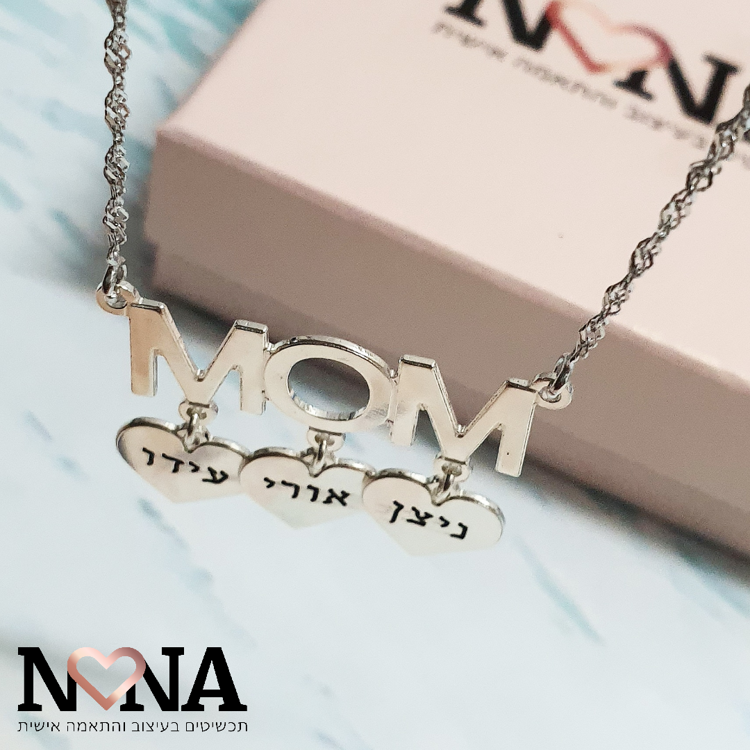שרשרת MOM עם 3 לבבות וחריטה דגם LAA69